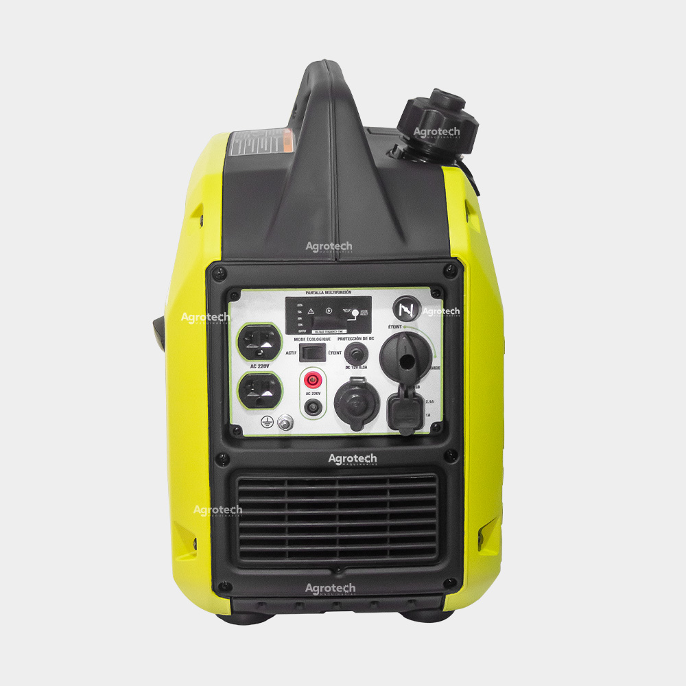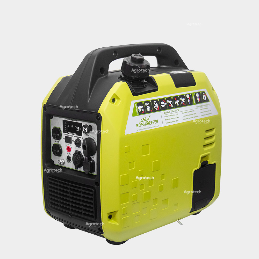 Generador Inverter Bonhoeffer de salida de 2000W. Es un generador pensado para trabajos de mediano rango de electricidad, utilizable para campamentos, trabajos de iluminación en negocios, pequeños talleres, transportable.